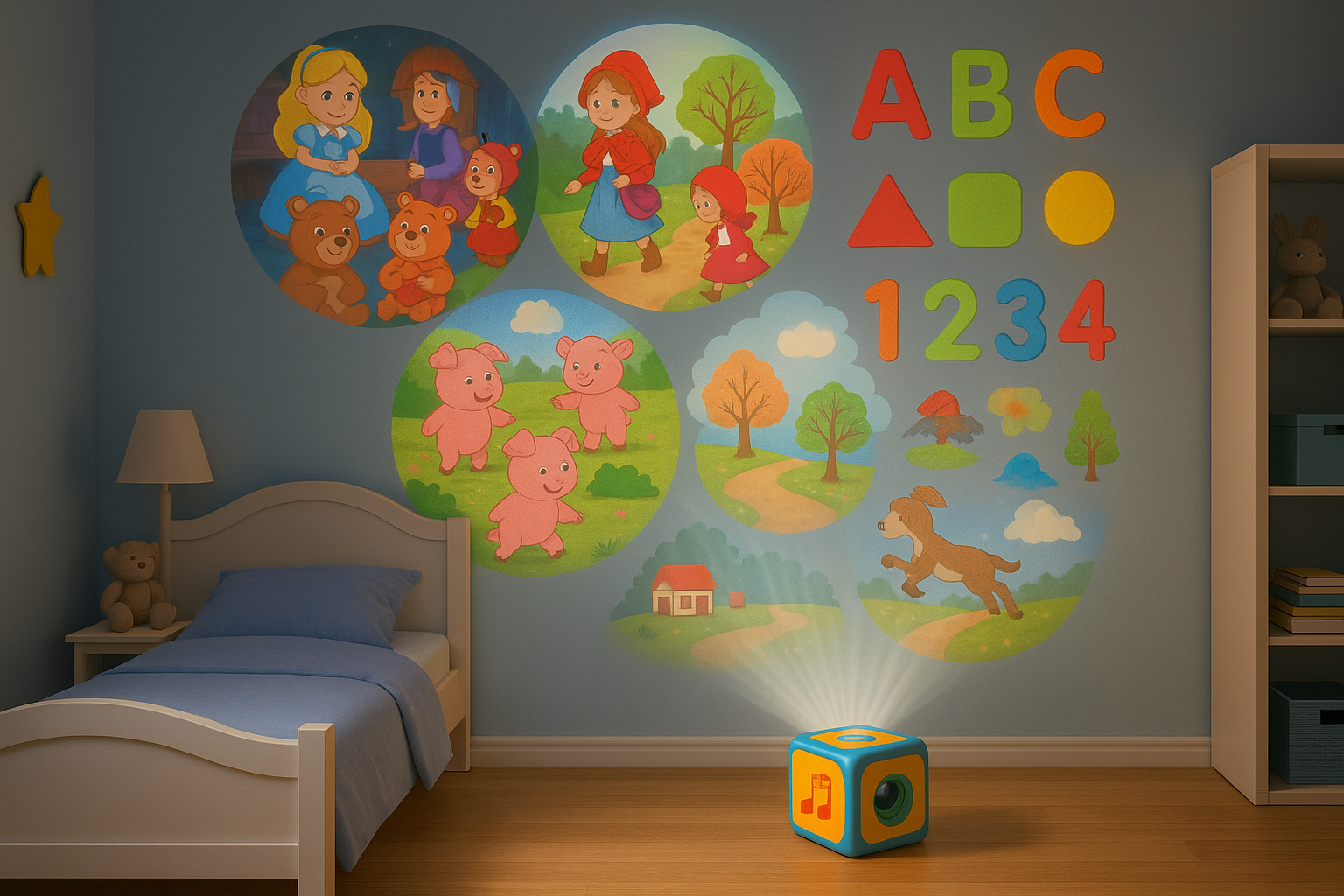 ✨ Descoperă magia poveștilor proiectate pe perete!